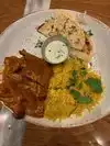 We expected more taste experience and creative dishes. Chicken tikka had unfinished rice, otherwise good flavoring. The scallops were good, but a little too little food for a main course. Nice tableware but you can see through in the details such as unwashed glasses, low quality crockery, glasses and cutlery. If I had owned the restaurant, I would have been disappointed.