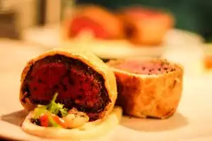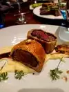 The food is ok but 8$ for a spoon of sauce! The side of the Wellington is purée, there is not even a spoon of it! Would never come back. The dessert was nice but it’s not enough!
