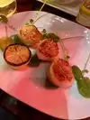 The scallops were perfectly cooked and the risotto was very tasty. My salmon was cooked to my preferred temperature (more toward the rare side) and had the absolutely crispest skin I have ever had. One of the best meals I have had. We had excellent service as well.