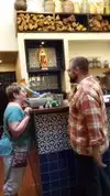 Enchiladas with mile very much on point. This eatery has been open a year next month. House made margarita by Ami is well shaken hence her big arms.