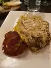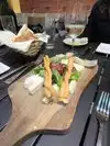 Very nice salads and cheese plate for lunch with a friend. Wine was nice even if it was a meager measured pour.