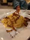 This was my second time to visit and it doesn’t disappoint. I wanted to try a couple of things so the server allowed me to have a starter size pasta followed by veal saltimbocca. The pappardelle al ragu aquilano was outstanding and I could (should) have stopped there. Would order again. The veal was also great and the portion was very large. The ambiance was so nice and authentic. Highly recommend.