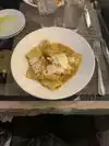 We had meat stuffed ravioli in a light cream sauce that was recommended by the waiter.The kicker was that it was topped with a small square of truffle flavored gelato.This was a taste sensation that I had never experienced.Pure genius.Their was a party of flavors in my mouth.Can't wait to return.
