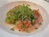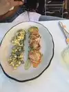 Amazing Ambiance: You really can't get much better than this. It's on a stunning wooden boat, strings of lights, and an unbeatable view. Small Portions: I really can't stress this enough!! The portions are so small you almost need to order 2 or 3 of some of their dishes. This is really more of an after dinner snacks and cocktail place. Do not come hungry!! Overpriced: I ordered the Ceviche (pictured), it was SO delicious, amazing flavor! But it was $16, and that was the entire thing. Bad Service: I made a reservation for 8:45 and we weren't seated until closer to 9:10. Our pre dinner oysters came a solid 20 minutes after dinner. When we were literally looking around wanting to pay the bill and leave (the restaurant was empty and closing at his point) our waitress forgot about us. I'd take off more stars but the ambiance really won me over. I'd come back for the atmosphere alone, but I definitely won't come hungry!