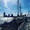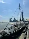 This place is amazing: beautiful wooden schooner with views of downtown Manhattan, Statue of Liberty and the Hudson. We came for brunch; had a reservation but it wasn't busy when we arrived. By the time we left it was packed and over an hour wait. If possible, get a table on the water side so you have a better view. Our server was very friendly and attentive. The food and drinks were delicious. It was a little expensive, but well worth it for the ambiance! Portions were filling for us - had oysters, fries, avocado toast, and eggs, grits, sausage. Cocktails we ordered were Skipper Key, Diplomat, and the Cocktail of the Day which were strong but tasty.