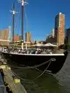 Visited this bar - which is situated on a beautiful old sail boat - one Monday night for drinks while on a self-directed bar crawl. We sat down at the only spots left at the bar and were served after about 10-15 minutes... not quite timely, but it was a nice night and the boat was packed. The drink menu is limited and pricey ($15-20 drinks) but you're paying for the atmosphere, which for a date, is definitely worth it. I'd hazard a bet that this is a great spot for after work drinks in the summer too. I'd definitely recommend for a drink or two, but not more than that as a) drinks are medium, and b) they're really expensive and there are better places to visit in Tribeca or the West Village nearby.