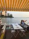 Great experience, wonderful location, super food. The setting on the Hudson is beautiful especially on a warm sunny day. The menu is pretty much seafood orientated but really well presented. Staff friendly and helpful. We went in the afternoon but apparently watching the sun go down in the evening is magical. You can't book so best to get there just before it opens (3pm weekdays)