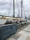 Really enjoyed our visit to this lovely old vessel moored on Pier 25. Staff attentive and pleasant, food imaginative and delicious, we had the $100 sharing menu and were very happy plus a couple of cocktails that made us even happier. The Menu is not outstanding but most enjoyable. We liked the authenticity of the schooner and if you are looking for plush seating this may not be for you. In good weather and a view of the statue of liberty this is a great place to eat and drink. Thank you