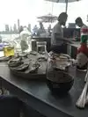 The place is very scenic and you can rnjoy a great sunset over the river. They have a good selection of oysters but the main are not very good so I wpuldnt recommend ordering anything else but the oysters. The boat gets very rocky if there are waves, and our friend got sick because of it. Its a nice place for a drink although is not a fancy place, the tables and chairs are made of metal. The waiters are good and welcoming.
