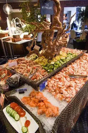Brunch at grand cafe with seafood menu Overall a good buffet with excellent service Worth the time to spend downtown around the museums and LA art museum Includes a large variety of desserts Decorated well for the holidays and was pretty full for the Sunday brunch