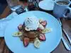 Beautiful outside brunch! Highly recommended! Great variety of very moderate priced meal choices. Delightful staff. Cool breeze and part shade on patio. Food was terrific portions, very fresh and deliciously and beautifully prepared.