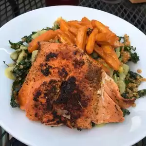 The staff is stiff. No substitutions allowed, cant even 86 the sides. I was the DD for a party of nine, so i couldnt get drunk prior to eating the food, but i can see that i needed to. The Blackened Salmon Burger is creative, but the Salmon sorely lacked the Blackened flavor and the Salmon skin wasn't crispy so it ruined both the texture and flavor. The Crispy Brussel Sprouts are horrible. They're flash fried to the point where u dont really get any brussel sprout essence/flavor. Biting into them causes them to disintegrate into fryer oil. To top it off, its garnished with scant lemon, bacon bits, and i believe ranch. Absolutely revolting.