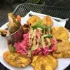 We were a large group of 7, grandparents, parents, & 3 kids. We were greeted graciously and seated inside within 15 minutes. The kids had things to draw on and with. All of us had a beer.... I had a Momo IPA, and the guys had Ripe IPA- a hazy IPA. We all had a different meal from shredded beef with veggies, fried plantains, and black and white beans to a grilled salmon sandwich and major burgers with fries. .... even the kid burgers were great! Well worth the price!