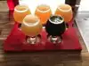 Evidently from the photo, we ordered a flight of five consisting of blueberry muffin, grapefruit zest, three way IPA, juice jr. and double stack Blueberry muffin was definitely the best for me, it's a little odd that beer can actually taste like blueberry muffin.... but it's a must. Also ordered the american burger, everything fries, and this other dish that I can't remember the name of.... but it had sweet potato in it. All three of the menus were exceptional and a little heavy, but perfect match with the drinks. Also it was enough for a family of four.