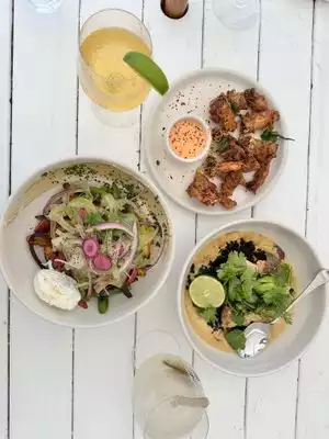 My husband and I had a 24 hour layover in LA and took a taxi to Venice Beach. I had read reviews of Great White and it sounded like a good place to go. It did not disappoint and the food was amazing! We had the Poke Bowl and Fish Tacos and the flavors were incredible. Everything coming out of the kitchen to other tables also looked great. If we had more time in LA we would go back again to try more things. Great atmosphere as well and the service was fantastic. Highly recommend Great White. We loved it.