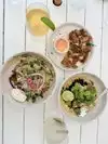 Short of a few banquette seats youâll prop yourself on a backless wooden stool after ordering from the pleasantly cool team behind the counter. Have a bowl, eat with one utensil and lay low. The food is extra cared for, fresh and delicious. This is an ultra casual, easy going, feel good about eating it food experience.