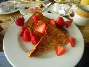Pretty good breakfast. Nice fruit salad, great eggs, bacon and potatoes. Good coffee but have had better pancakes.