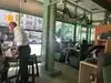 This is called Green Kitchen 2. Restaurant has indoor and outdoor seating There are tables, booths and a counter with 12 seats. Ordered a salad - stuffed avocado and tuna salad. It had lettuce, cucumbers, red onions - I omitted the peppers. I also ordered decaf coffee with cream. It was fresh. Pleasant atmosphere. There are two televisions behind the counter. Room enough for my small cart. Asked if I wanted more coffee. Will definitely try again next time I am in area.