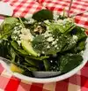We stayed at Encore, so it's an easy walk across the bridge to Grimaldi's. We didn't order a salad, just a pizza and wine for me and margaritas for my husband. When we asked about the size of the pizzas it appeared that the waitress was a bit annoyed with the question as I imagine many people ask this. She said the small was the size of a large dinner plate with 6 slices and the medium is a little larger with 6 larger slices. We found the small to be just fine. The table next to me had the medium and that would be fine for 3 people. We never saw the waitress again, but the waiter who brought us our pizza and drinks was very friendly. I recommend this place.