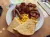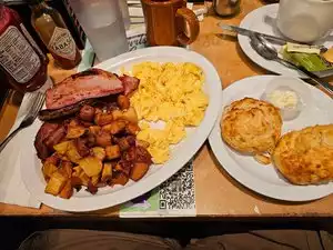 Decent and doable but a tad on the dirty side. Service was inattentive. Forgot multiple items. Food items came out warm versus hot and freshly made. Waffles are Waffle House styled, flat and round. Pork Sausage Patty was inedible. Not Housemade, which I expected. Whatever brand is used is plain and too salty, rendering them inedible. Sourdough toast came burned. Again, inedible. Everyone's eggs came warm. One scrambled came overcooked and browned versus yellow. The Sunnyside Up eggs were beautiful. Didn't receive the drinks or sides, even after being reminded. Staff seemed to be overwhelmed. Initially, upon arrival at the table, the seats were dirty. We asked for them to be cleaned, which was done. We then asked for the table to be wiped because it appeared as if there was a dry coffee spill, which it was but only underneath their top covered glass. The person who wiped stated, this just is a very dirty restaurant. WHO SAYS THAT to customers?!?! Didn't make us feel at ease. Overall, the entire experience and food was offputting. We're 1 and done.