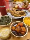 A few friends took me here and I owe them BIG! We came for breakfast and I ordered the biscuits & gravy w/2 OE and grits. The mountain of biscuits & gravy was impressive, but I have never seen such small eggs. The grits, on the other hand, were some of the best I have ever had. Everyone does things differently and those chose to pout on the gravy and them add chopped sausage on top. I believe it makes a better gravy when you cook the sausage and then add the cream, etc. to make the gravy, but it was still good. They have a banner outside for getting voted Best Soul Food. I don't doubt that, but with that in mind, they need to learn how to make iced tea. What I got was a glass full of ice, topped with water and a lemon ginger tea bag at the bottom. That is NOT Iced Tea, but the waitress happily replaced it with a Coke. I can't wait to go back and try with fried chicken and catfish.