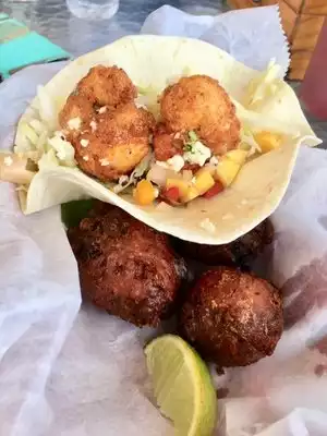 Great ambience on the water. Probably the best fish tacos I've had (get blackened). Highly recommend.