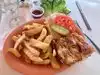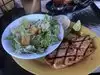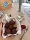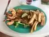 The service was brilliant and the guy was chilled but really prompt. We went for a variety of dishes to share. All were decent an typical of the area. Dolphin fingers were especially good as were the chicken wings. Great place to watch the world go by. Music was cool, too.