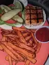 The wife had fish tacos and I had a burger. All were amazingly delicious. Highly recommended. Reasonably priced. A little hard to find. Hidden in the way back.