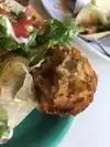 1) Appetizer was brought with our dinner and they were shocked when we asked why did we not have them BEFORE the dinner was served. 2) Fish Tacos - one bite of fish per taco. 3) Southwest Chicken sandwich - dry chicken and no flavor. Our friends had fish of some type that they sent back as it was not fresh at all. The manager however, was accommodating and replaced their meal with a salmon dish which they said was good.