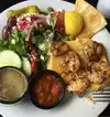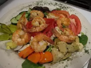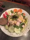 We stopped in this afternoon for a very late lunch. My wife chose the City Island Salad - a spinach salad with grilled shrimp, coconut, mandarins, and crispy noodles. I ordered the Knish-Knosh - an open faced knish with pastrami, corned beef, kraut, and swiss cheese. Both were excellent!