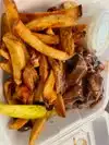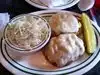 we were looking for something new to try and online reviews said Gruby’s was a definite to check out in the Atlanta Perimeter area. we got the open brisket beef sandwich - which came with fries and coleslaw - as well as a potato knish and veggie wrap - got the wrap on a sub roll and substituted coleslaw for the cucumber salad. the cucumber salad was really good and excellent flavor and tasted homemade. the fries were also good and tasted homemade. the brisket was a large portion and had good flavor (tasted like a debris poboy) and the veggie wrap was a large portion and decent - although wished the bell pepper and mushroom had more flavor. it was my first time having a potato knish and it was average. overall huge portions and good food