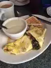 We enjoyed our big breakfast. The three egg omelette was delicious and the grits (we were in Atlanta) were just right. bagels were fresh and the cream cheese was generous.