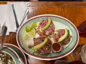 Had dinner here with two associates all of us into San Antonio for a few days. It was near the Aloft SAT and had reasonable reviews on TA. corn chips and salsa were brought to the table immediately. The chips were fresh and crispy and the salsa nice and spicy. We shared an order of the mixed ceviche. The fish was good but the sauce was a little to much like cocktail sauce instead of the citrusy sauce typical of ceviche (at ready for me). I had a big bowl of the lamb soup which was good (although my favorite lamb soup is at Little Poland on the east side of second ave between E12 and E13 at in NYC10003). Another person had the chicken mole (I forget the exact name of the dish but it's listed as the most common Mexican restaurant dish on the menu). This was delicious. The dish the third person has was shredded pork with pineapple tacos. Also delish! There were a variety of different tacos, and other Mexican dishes which all looked good coming out of the kitchen. All in all, I'd go back here when I come back, although partially because it was so close to the Aloft and is likely stay there again too (SPG member on the way to platinum status so starwoods are my goto places)