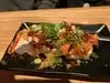 Headed to this venue for a quick lunch before a Broadway Matinee - my partner had a social-packed day so was keen to avoid the Japanese BBQ smells which would potentially have lingered all day had we opted for the conventional BBQ options. We went at 12pm so were eligible for 'Happy Hour' which allows discounted food-drinks. We opted for 2 starters (Calamari, Spicy Sui Mai) and 2 bowls of Ramen (chicken) as well as salad. Along with drinks, this came in at just over $50 which was good value. All good ramen needs to be accompanied by good quality broth and this really hit the spot. Calamari was crisp and perfectly seasoned. Sui Mai was pretty average (stick to chinese Dim Sum restaurants) and the salad went untouched due to the size of portions. This was packed 'to go' Overall - a nice lunch. Whilst we were leaving the restaurant become completely full with ample people waiting for tables in the waiting area - for sure, the sign of a popular venue.