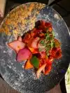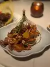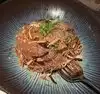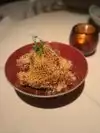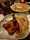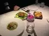 the food was absolutely delicious. we expected small plates, due to the high class of the restaurant , but the portions were absolutely huge to the point there was no finishing it for me. it has a dark vibe, which i didnt enjoy as i hate eating in the dark , but thats a personal preference. overall it is very good and i can understand why people rave about it so much. one thing i will say though , is that online it makes out that a dinner jacket is a necessity to eat here, smart casual. there were some of the most casual dressed people ive ever witnessed. Beanies , baggy tshirts, even sweatpants. very misleading and we could have saved a lot of money before coming to vegas if we knew that as we bought jackets etc especially.