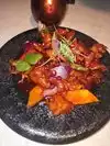 When we arrived our table wasn’t quite ready so we were taken to the bar area for drinks, it was busy but we were served fairly quickly. The restaurant has a good vibe with a dj playing and is well laid out for privacy. The menu has a good variety and the cocktail menu is fantastic. We really loved our food, our only criticism was that some of the dishes could have been a bit warmer for our taste. Our server was great. Overall a fairly expensive meal with great quality food food in a fun restaurant.