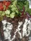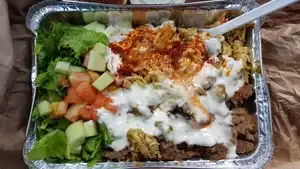 The food here is terrific, really fresh. We tried the Schwarma (chicken and beef), which comes with a side salad. We ordered 3, for 3 hungry people, and had a whole meal left over. We're going to order again (and we want the leftovers!). Got it delivered (free) through Amazon Prime.
