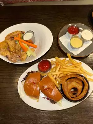 Friendly service and good food. Busy and the management helps out bussing tables and cleaning in the restaurant. Chicken wings are excellent. Sandwiches are well presented and lots of crispy fries. Good selection of beers and wine.