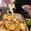 We enjoyed the small bitr menu. The ribs were good, and the peppers in sauce were very good. Although the salad was ok, I would not reorder the California salad. There were 2 other option. Also, even tho the place was not crowded, we were seated at a table right outside the kitchen. Speak out for a better table.