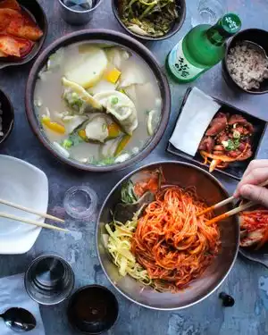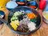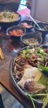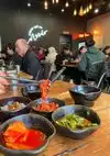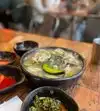 we visited for an early lunch on a holiday and there was already a wait-list around 11 am. Extremely popular among South Asians - which is probably a good sign of authentic Korean food. The service was good and our server was able to communicate in English and explain the dishes. All their broths have anchovies and none of them are gluten free. The vegetarian options on the menu are limited to bi bim baps - they have a couple different varieties. They also serve barley tea (instead of water). Water is also available.