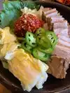 Flavorful traditional hand cut noodles in seafood broth, tender vegetables, mushrooms and meat in stone bowl. The food is fresh, spicy and packed with flavor. Very popular with young and old.
