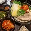 Popular noodle soup and bossam spot in KTown. Came here with a friend on a Friday evening around 7:30pm and there was a long line, but we ended up only waiting for 20 minutes. You order at the door before getting a seat. Credit cards accepted. There’s two single occupant restrooms in the back by the drinks machine. Indoor dining only (no outdoor options). Valet parking or you can try your luck with street parking. We got a medium bossam and a small kalgasuku (spicy seafood). The seafood included were shrimp, mussels, and clams. The noodle texture was perfect. The bossam was really tender and comes warm, with a side of garlic, jalapeños, radish, and cabbage. They give you two sauces to dip the meat in, but it’s flavorful enough on its own. The waiters were busy but still nice. They give you a small serving of rice as well as banchan. They do have alcohol. It seems more suited for a small group given the restaurant size, but there was one large group there. Overall, this was a busy spot with a focus on noodle soups and bossam.