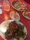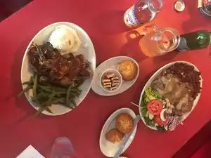Free freshly baked corn muffins, very generously sized portions will have you taking the left overs home. I had fried snapper, which was tasty but a bit dry, collared greens that had been cooked to far too long, and yams with brown sugar to die for. The food really only deserves 3 dots, but the funky corrugated iron walls, very reasonable prices, and the friendly staff made the dining experience 4 dots, the meal was fun and I left with a smile on my face