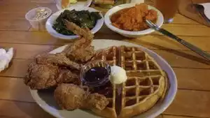 This small restaurant offers so much good comfort food and great draft beer that it is unbelievable! The only complaint is that you usually have to wait in line to get a table. I absolutely love the fried chicken and waffle dish. You can ask for all white meat or dark or just get what they bring you. Of course the chicken is on the bone which adds to the flavor & mess. The corn bread and green beans are also excellent. My sister-in-law got the tossed sald with grilled chicken and liked that too, but you gotta try the fried chicken! The only food that I wasn't crazy about was the mac & cheese. That's just average in my opinion. Along with the great food, they offer draft beer, Andy Gator from Louisiana and their own label, Hard Knox. Both are great beers.
