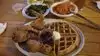 Delicious chicken and waffles!! The sides my husband had (mac and cheese, mashed potatoes) weren't that great but the fried chicken made up for it.