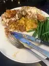 Food was okay. Had the Baby Back Ribs. The coleslaw was very bland. Daughter had a salad with salmon and she liked it. Service wasn't to good. Had a beer that tasted like vinegar. Good news a restaurant was open where you could sit down with family.