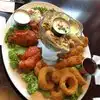 This was the best meal I have had at a Hard Rock Cafe. Close to our hotel we stopped there for lunch on a rainy day. A large group had been seated before we arrived but we were seated and given drinks soon after we arrived. It took a while for the food to arrive but we stayed entertained looking at the memorabilia and watching music videos. The music was a little loud for us. The server was very attentive. I had a new menu item, cauliflower burger, which was great with a large side of french fries. My husband ordered the jumbo combo for his meal. He enjoyed the variety included and I enjoyed the crispy onion rings that he shared. Although we were both hungry and the food was delicious, we could not finish the food.