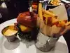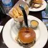 I had dinner here with a group of colleagues on business in Chicago. I didn't have high expectations, so I was pleasantly surprised. The menu has many variations on a limited range of foods. I chose the Lava Java Burger, which is prepared with a coffee rub and served with a grilled jalapeño. The burger was cooked to medium, as ordered, and delicious. The toppings added flavor and texture without making things soggy. The beef was of good quality and the coffee rub was delicious. I chose a side salad, although the burger still came with fries, which I found to be a bit too heavy a meal, though my colleagues were happy to eat them. I combined it with a Goose Island beer and left satisfied.