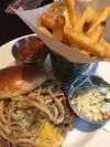Very clean, prompt service, great food! Had their barbecue pork sandwich with apple and slaw. Yummy! Fries were great! There Blackberry Sangria cocktail was soooo good! Love everything about the place.