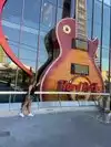 We needed a break from walking the Strip and ducked into Hard Rock Café for a beer and a look at the rock memorabilia. This location is laid out a bit differently. The first floor is all merch, and the restaurant, bar, and memorabilia are upstairs. That layout keeps casual passersby out of the dining area and prevents non-customers from using the restrooms. Heading upstairs felt like walking through a gauntlet of staged photo spots and enthusiastic staff. They encouraged us to pose for pictures we could later buy online. I resisted at first, but we went along, and a few weeks later I found myself purchasing the photos, so their tactic clearly worked. Ha! It was midday on an early weekday, so the bar was pleasantly quiet. Happy hour was still on, so we ordered a couple of beers. The bartenders were friendly and attentive, and they told us they have some of the best happy hour drink prices on the Strip. Too bad it was our last full day in Vegas, or we would have been here every night. We will definitely keep this in mind for our next visit. Overall, this Hard Rock Café is spacious and well located, with a fun rock vibe and plenty of memorabilia to admire upstairs. It was the perfect spot to recharge after a few hours on the Strip. Next time we will stay longer and try the food to see how it measures up.